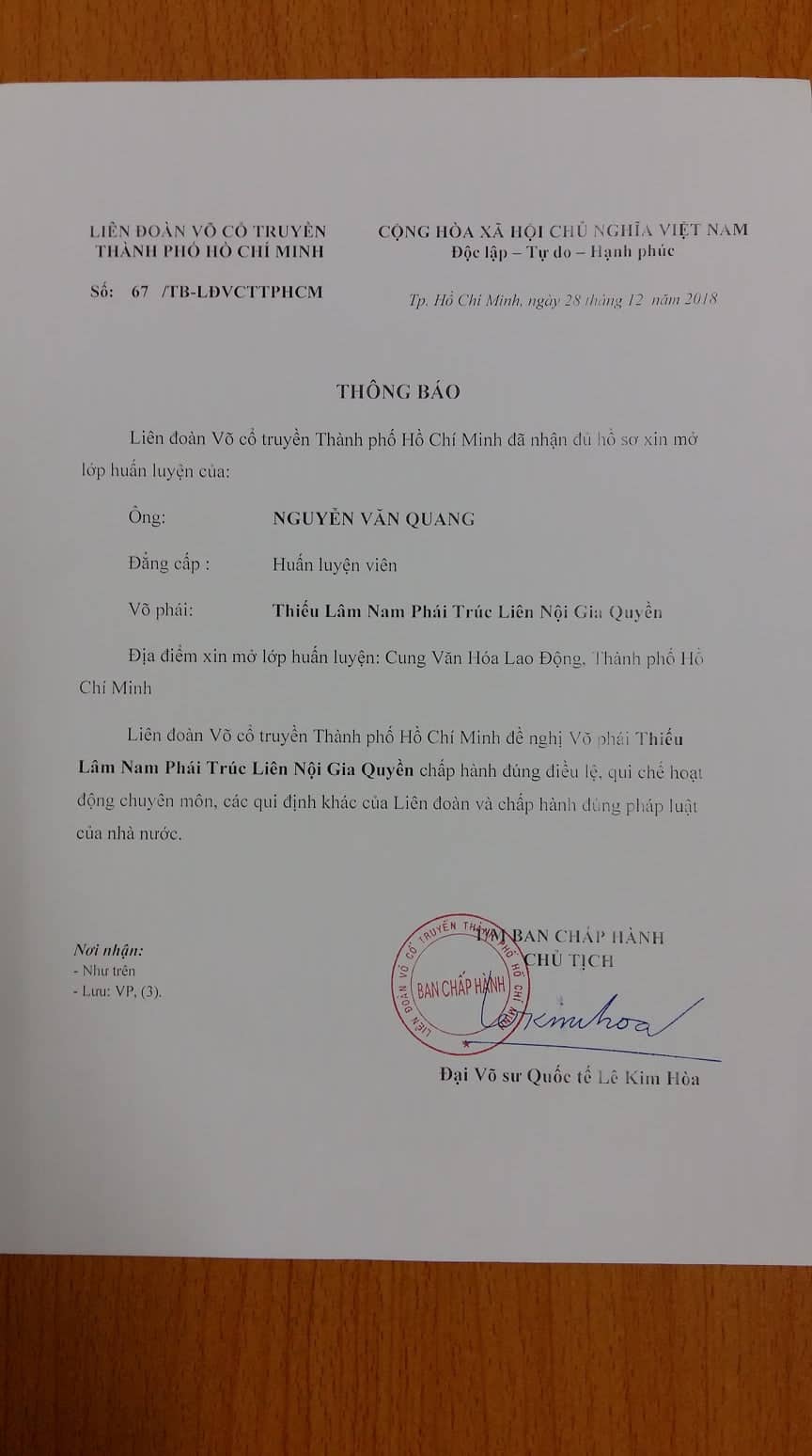Trúc Liên Gia Nhập Liên Đoàn Võ Cổ Truyền TP.HCM 28/12/2018